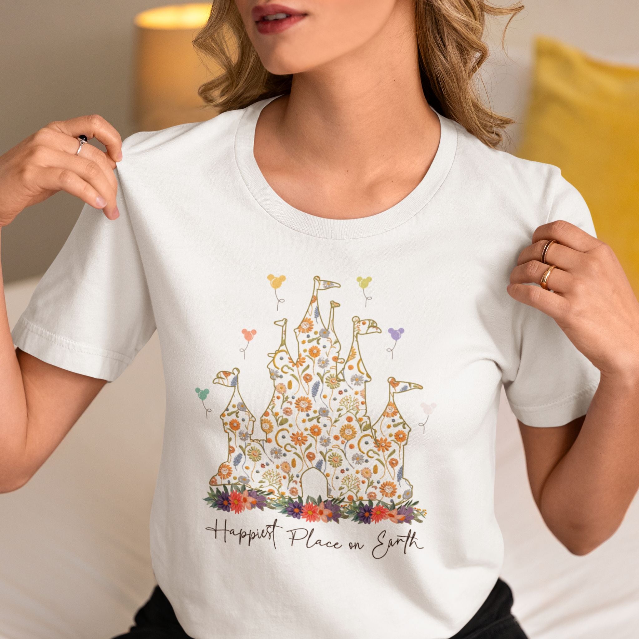 Disney Castle Floral Shirt, Happiest Place on Earth Shirt, Vintage Disney Shirt, Magic Kingdom Shirt