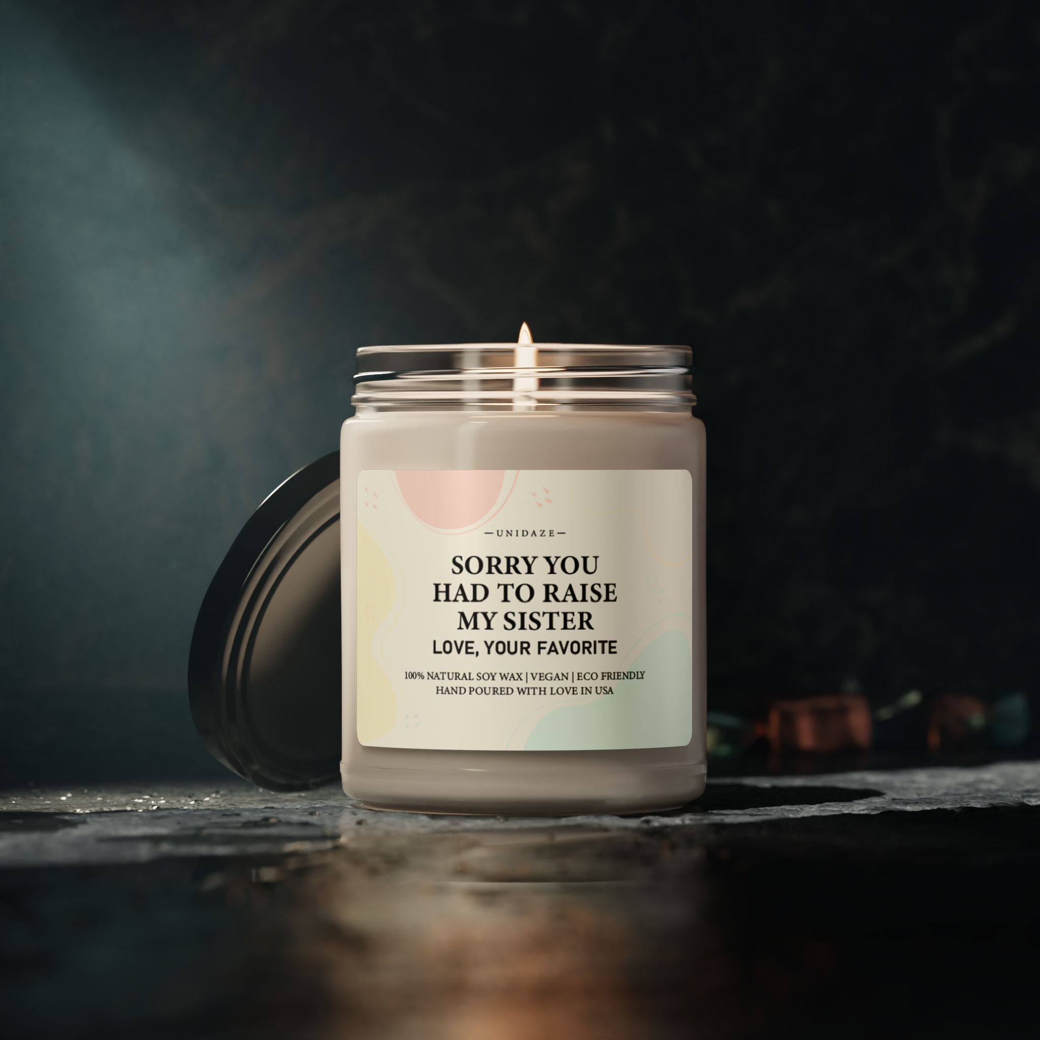 From Favorite Child Sorry You Had To Raise My Sister Soy Candle Funny Gift for Mom/Dad/Parents from Daughter/Son Eco-Friendly 100% Soy Candle