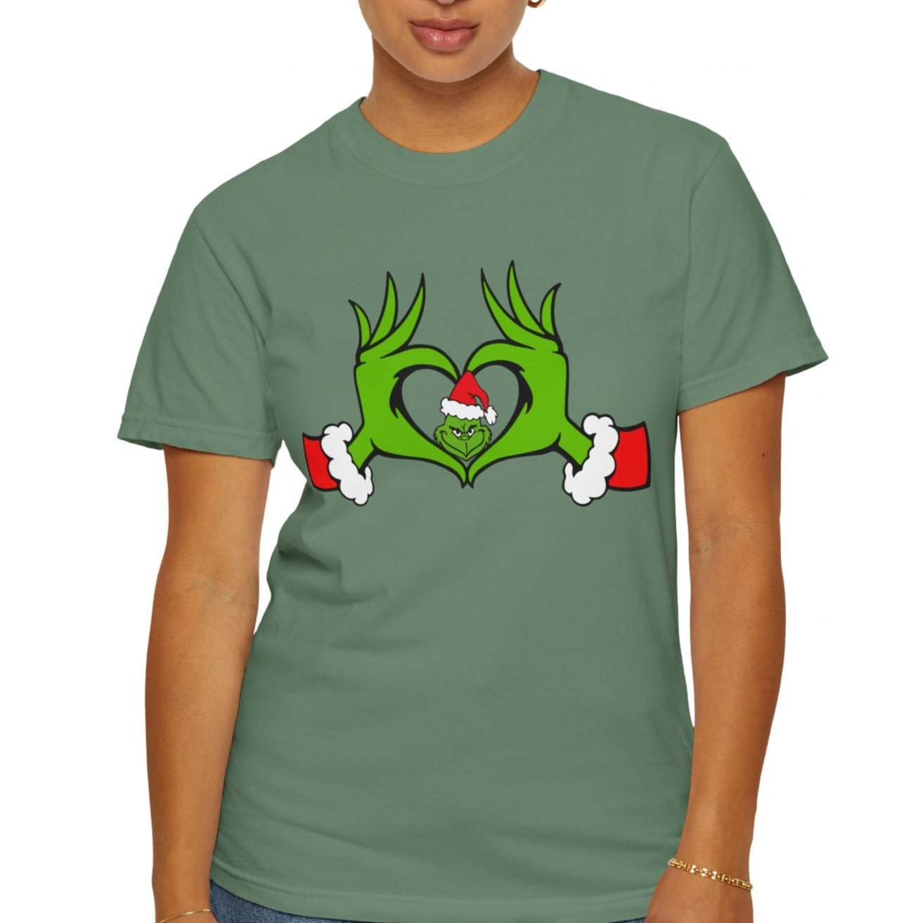 Grinch Heart Hands Graphic Tees, Grinch T-Shirt, Christmas Shirt, Xmas Clothing, Holiday T Shirts, Christmas Gifts, Christmas Party Shirt, Grinchmas T-shirt