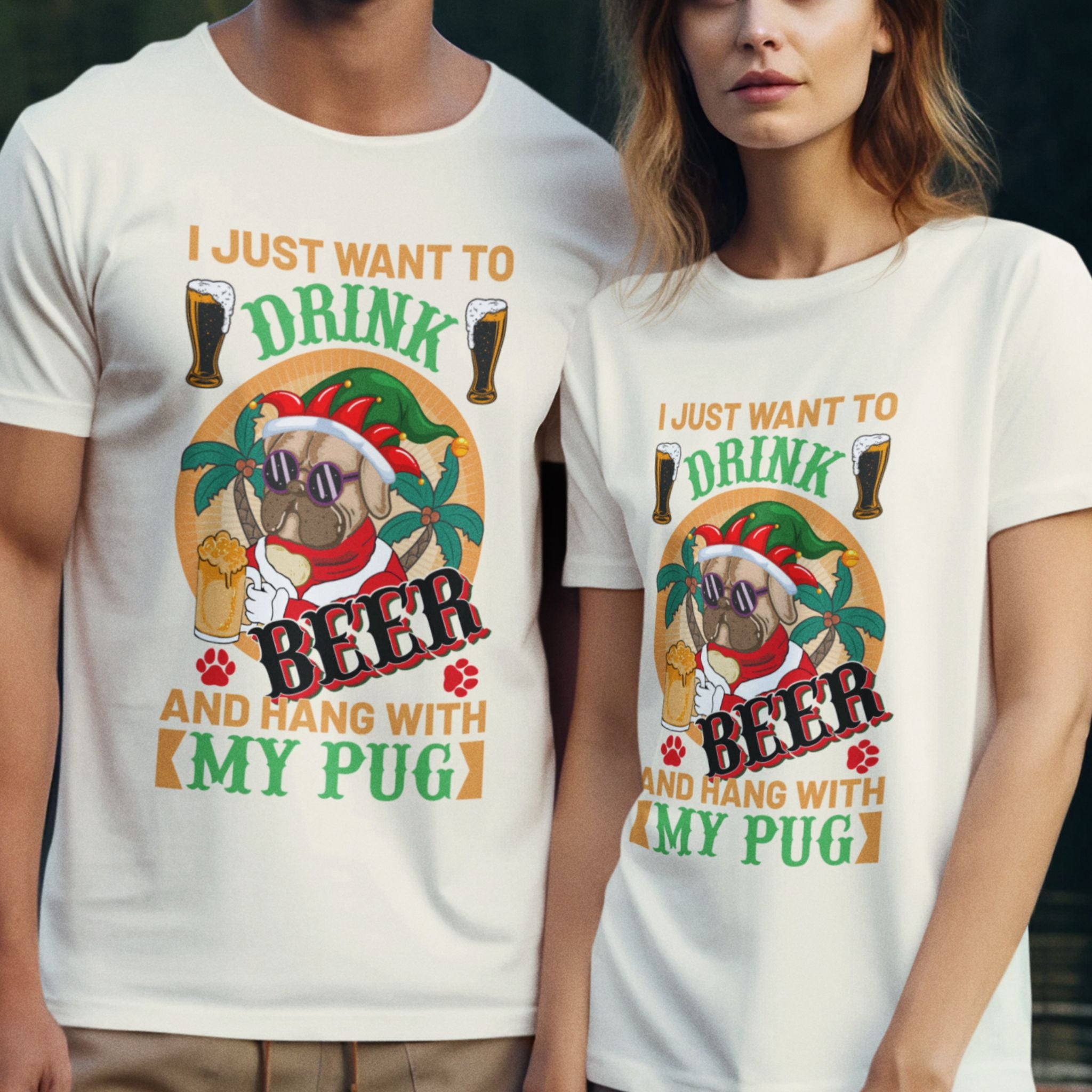 I Just Want To Drink Beer And Hang With My Pug T-Shirt, Funny Christmas Pug Shirt, Proud Pug Owner, Pug Dad Gift, Pug Mom Present, Puggie
