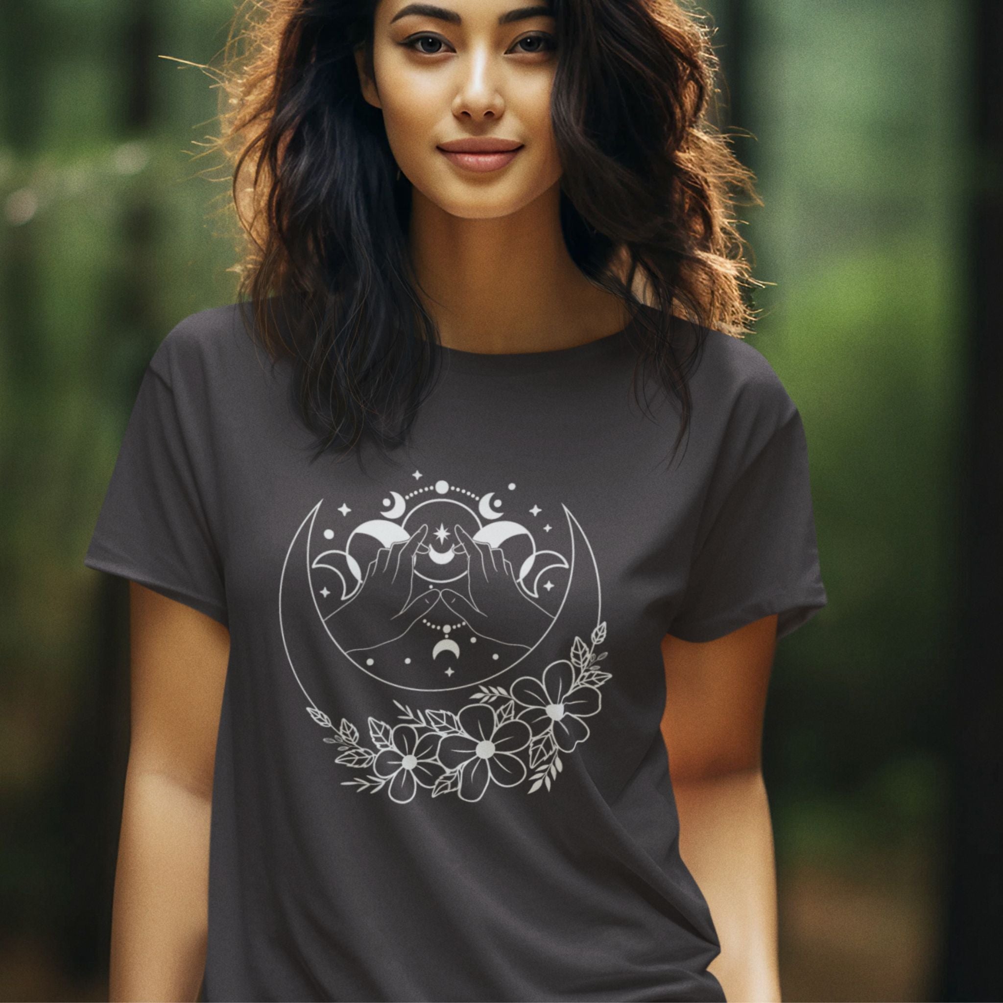 Mystical Moon Phase Witch Hands Shirt, Moon Phase T-Shirt, Celestial Shirt, Floral Moon Phase Tee, Boho Shirt, Moon Gift Shirt For Woman