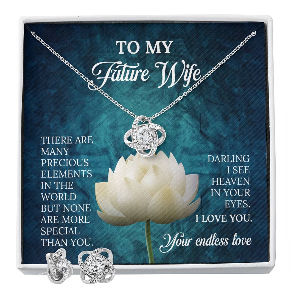 To My Future Wife Love Knot Necklace & Earring Set, Rehearsal Dinner Gift, Sentimental Gift For Bride From Groom, Birthday Gifts For Fiancée
