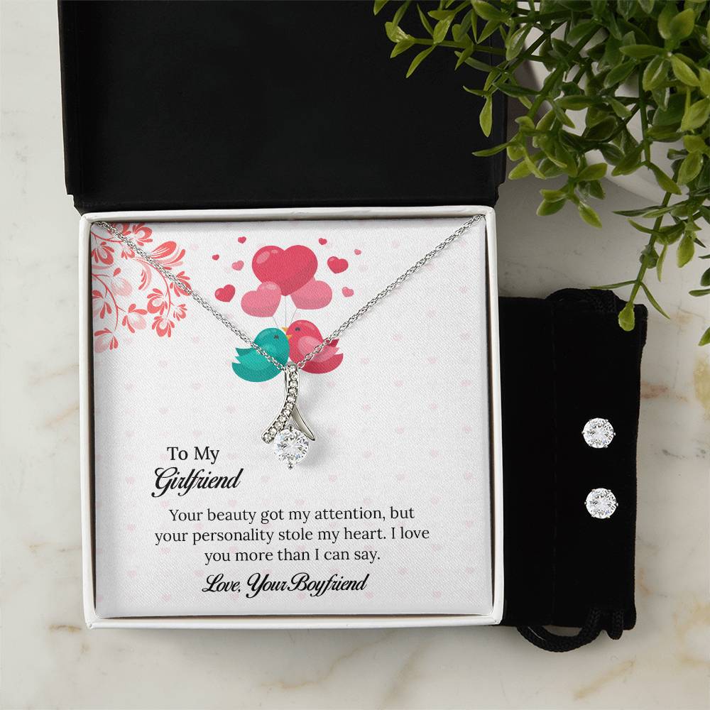 Imagine her reaction when your loved one opens this stunning gift! The Alluring Beauty Necklace and Cubic Zirconia Earring Set is a sweet treat that is sure to dazzle your special someone! The necklace and earring pairing provides loads of sparkle when worn together or separately, and is perfect for any occasion! Do not miss out on this special offering!