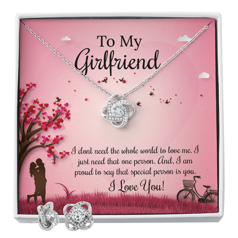 To My Girlfriend Love Knot Necklace & Earring Set, Gift for Girlfriend, Anniversary Gift for Girlfriend, Girlfriend Birthday Gift