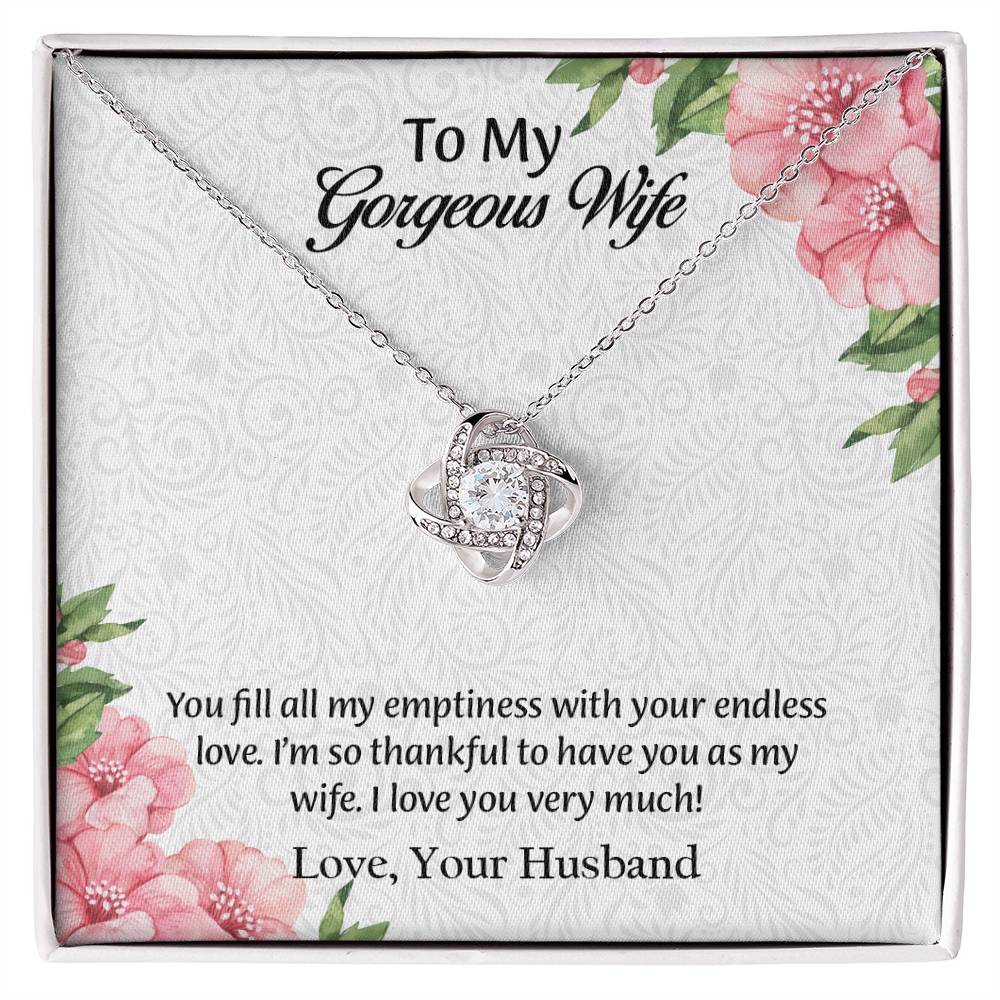 Imagine her reaction receiving this beautiful Love Knot Necklace. Representing an unbreakable bond between two souls, this piece features a beautiful pendant embellished with premium cubic zirconia crystals. Surprise your loved one with this gorgeous gift today!