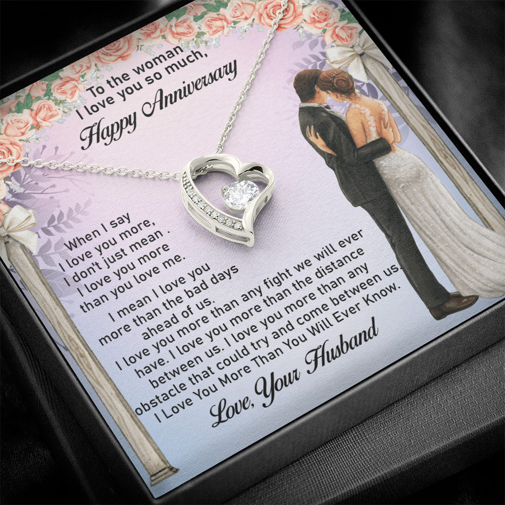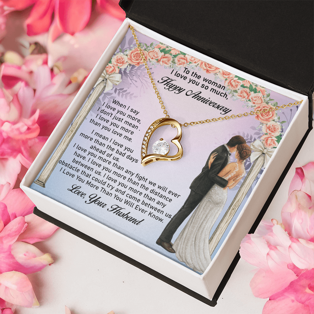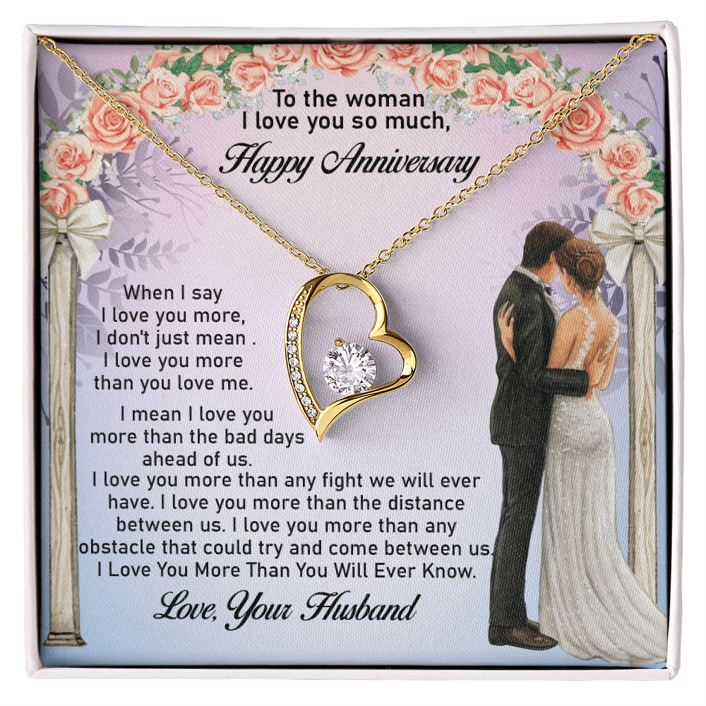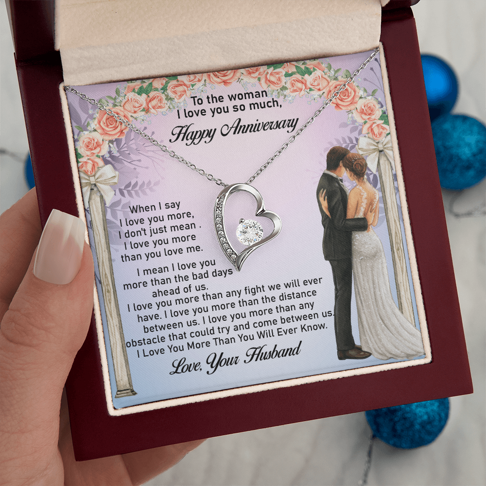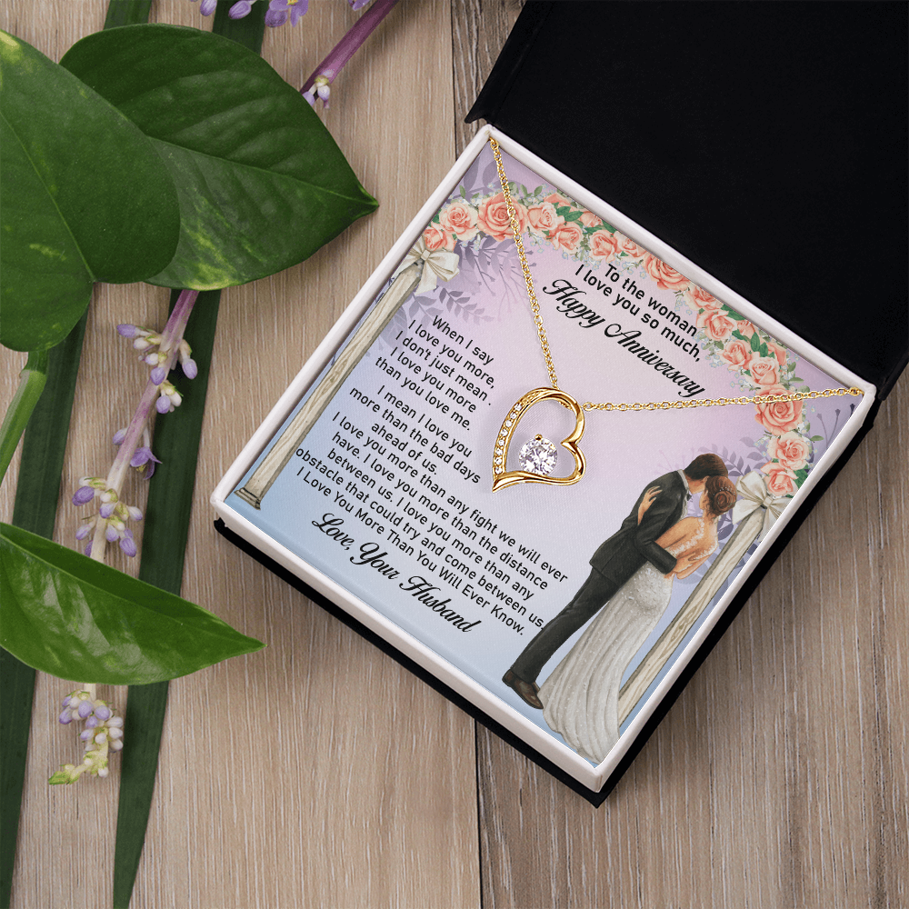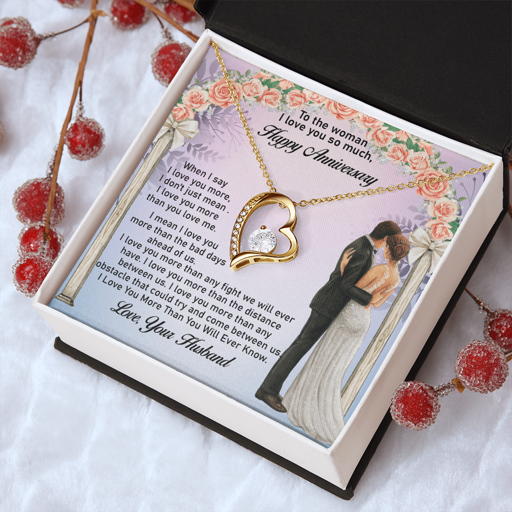 Message: When I say I love you more, I don't just mean I love you more than you love me. I mean I love you more than the bad days ahead of us. I love you more than any fight we will ever have. I love you more than the distance between us. I love you more than any obstacle that could try and come between us. I Love You More Than You Will Ever Know.