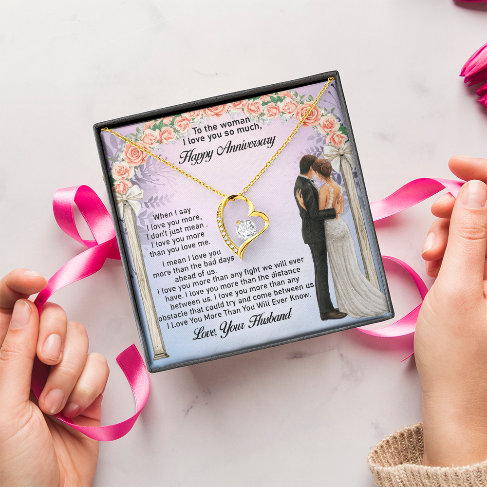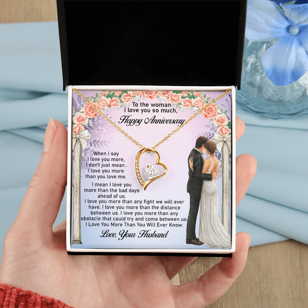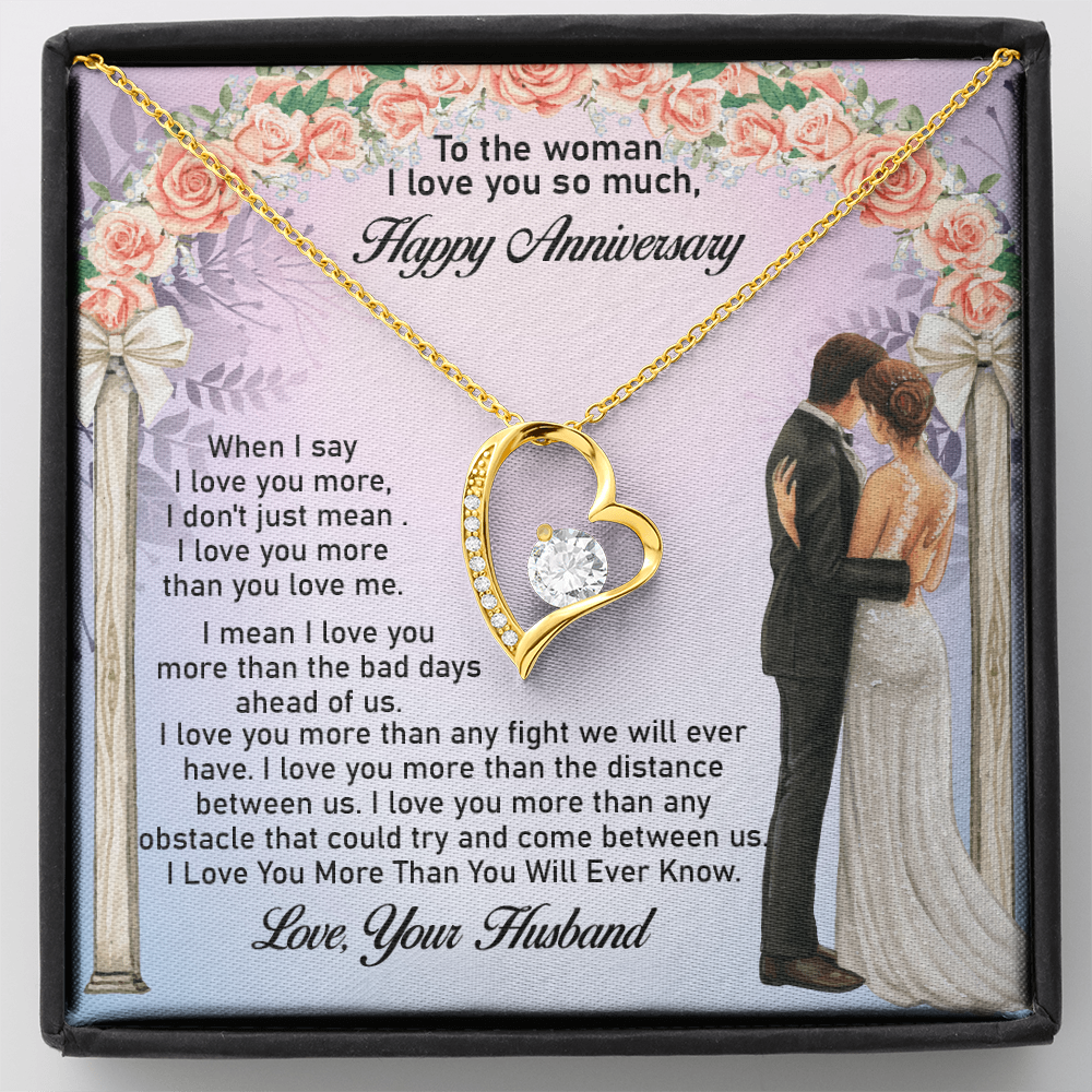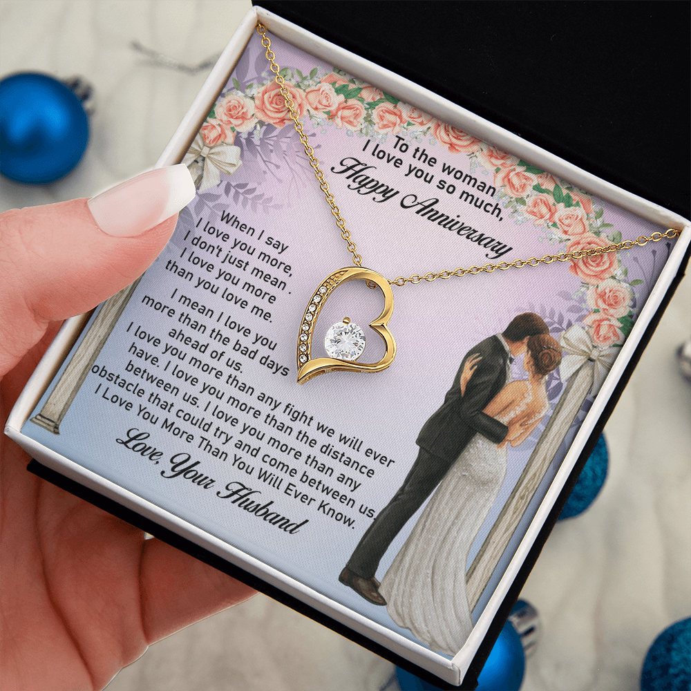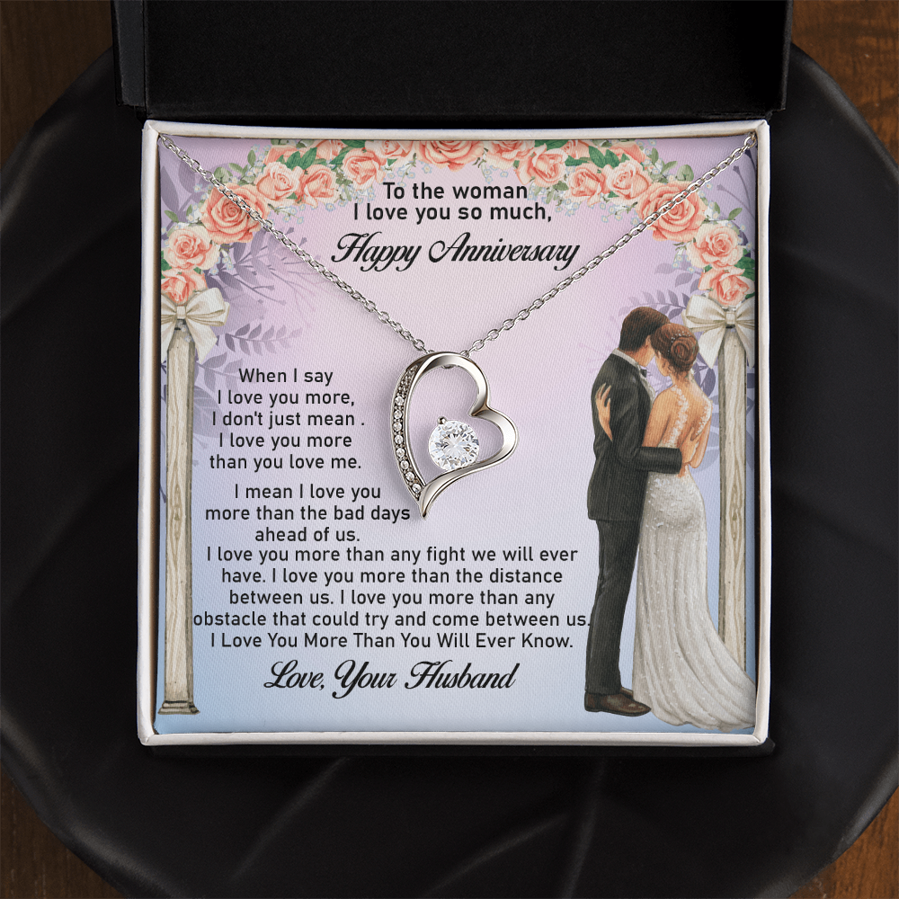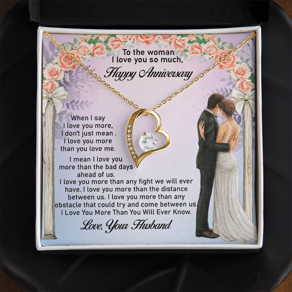Message: When I say I love you more, I don't just mean I love you more than you love me. I mean I love you more than the bad days ahead of us. I love you more than any fight we will ever have. I love you more than the distance between us. I love you more than any obstacle that could try and come between us. I Love You More Than You Will Ever Know.