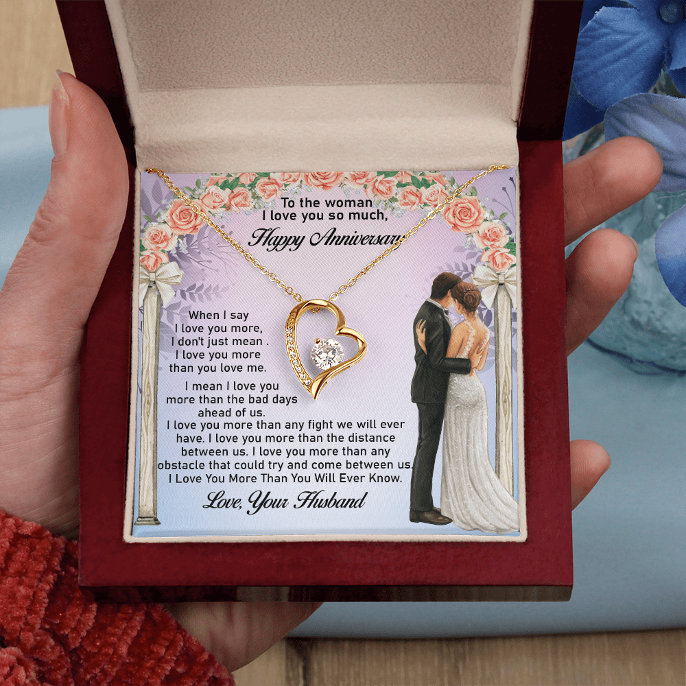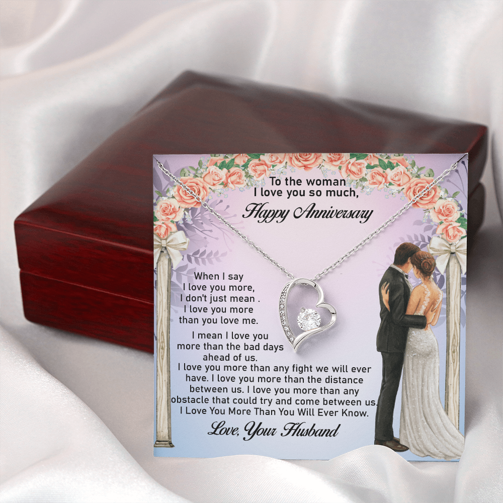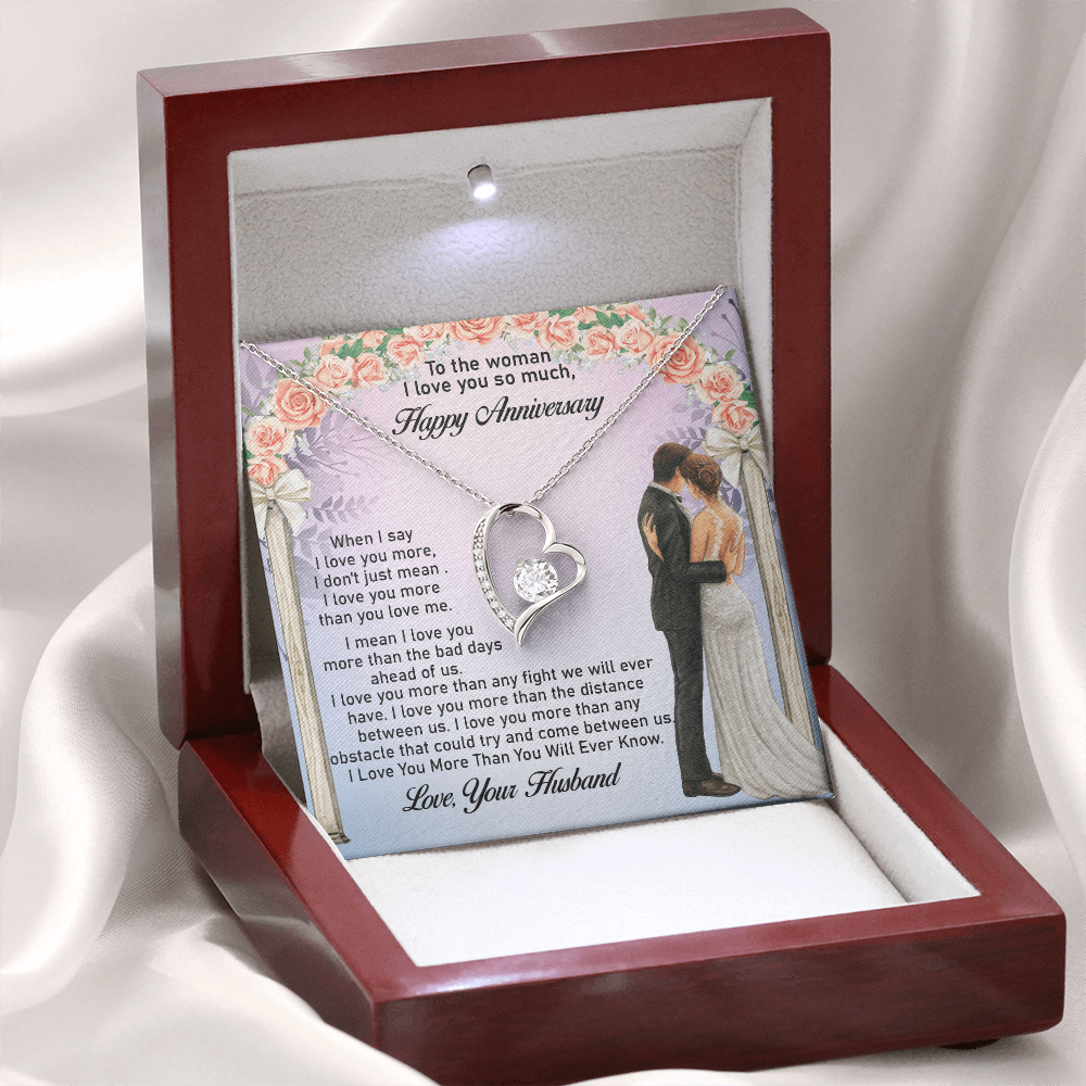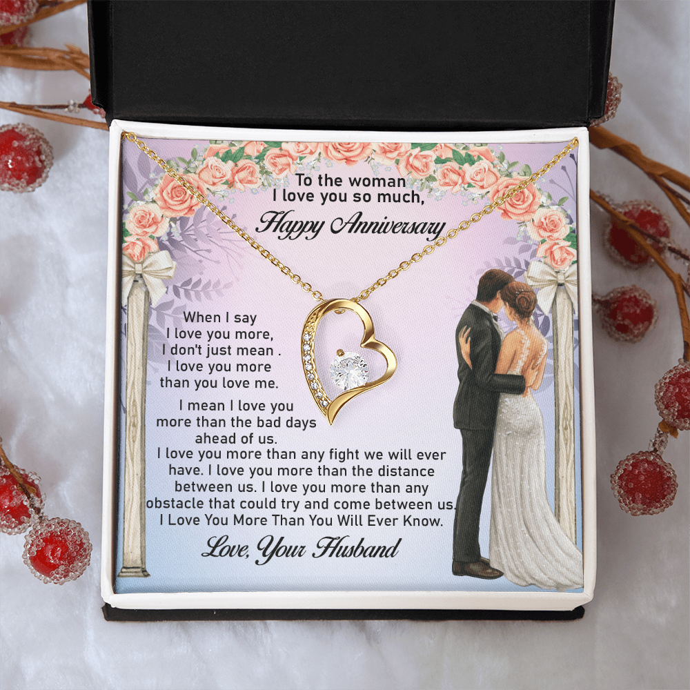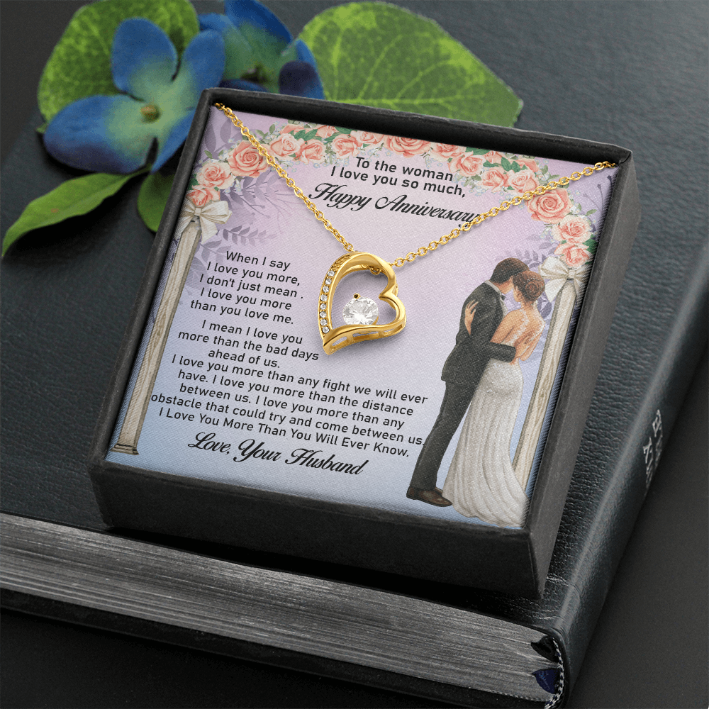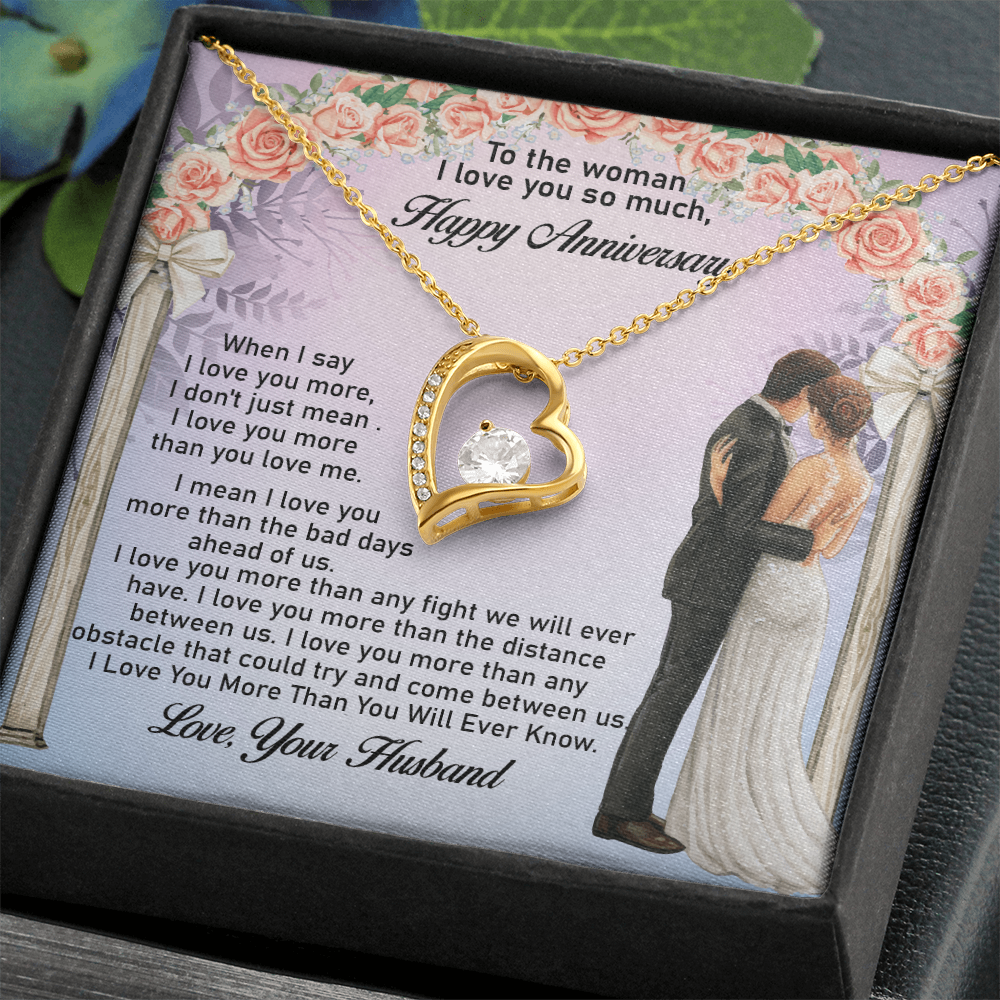Message: When I say I love you more, I don't just mean I love you more than you love me. I mean I love you more than the bad days ahead of us. I love you more than any fight we will ever have. I love you more than the distance between us. I love you more than any obstacle that could try and come between us. I Love You More Than You Will Ever Know.