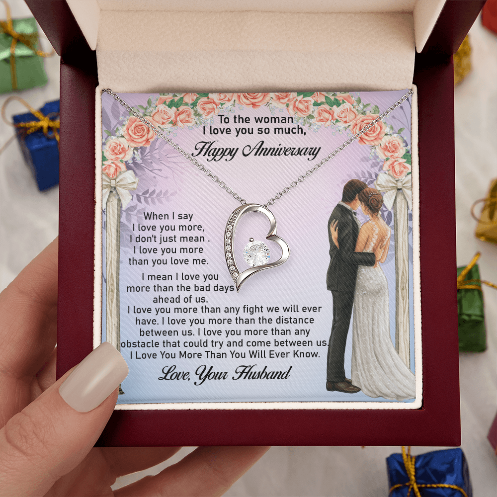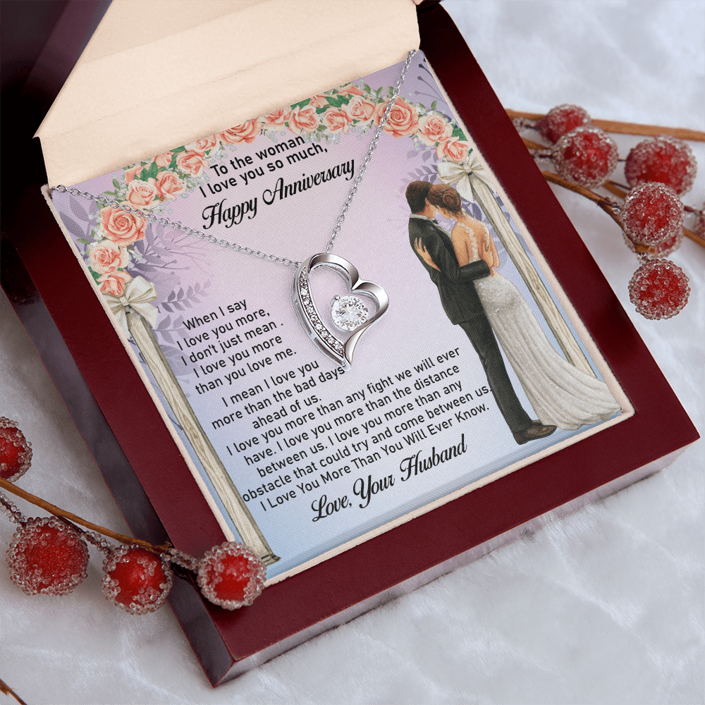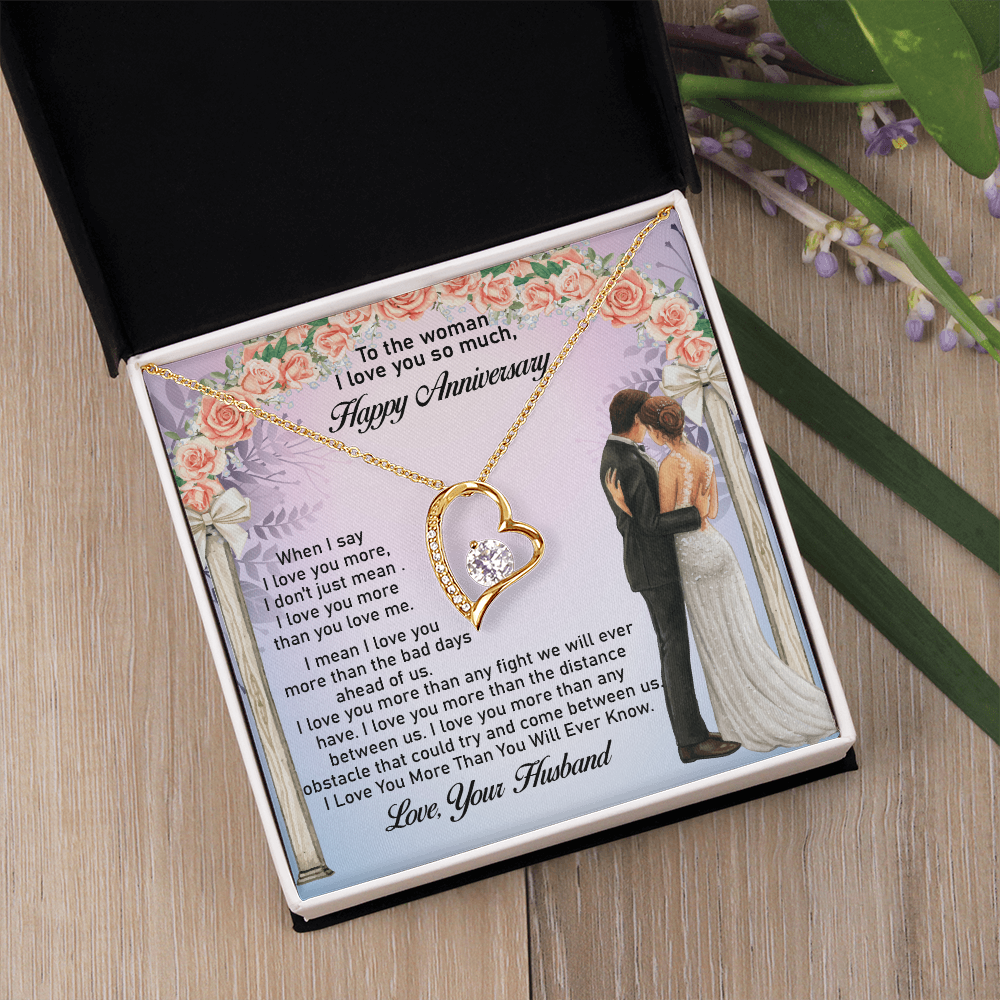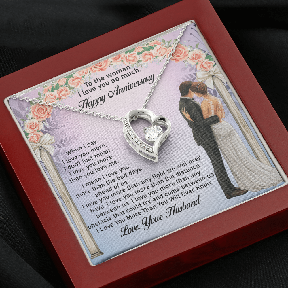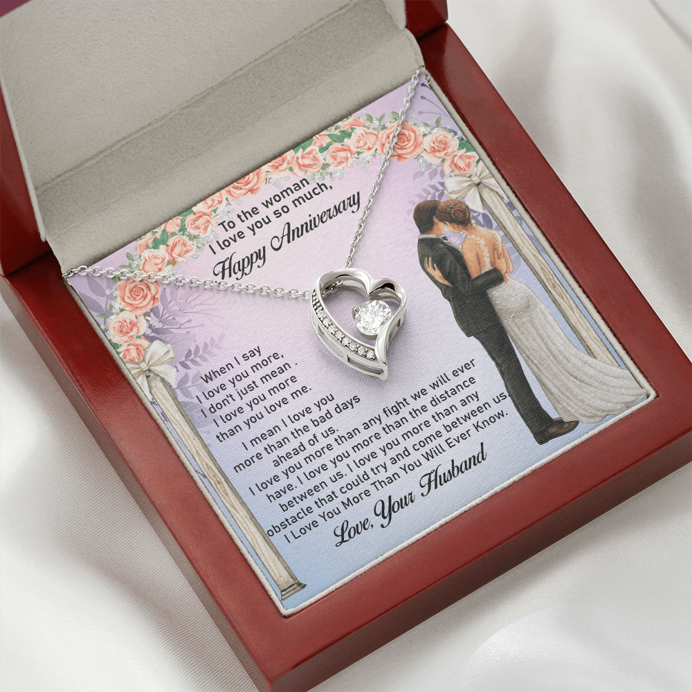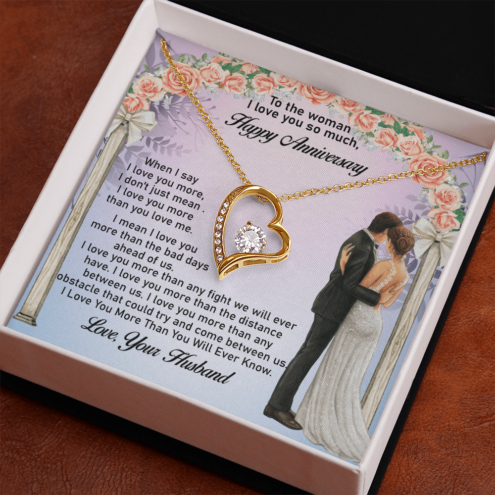 Message: When I say I love you more, I don't just mean I love you more than you love me. I mean I love you more than the bad days ahead of us. I love you more than any fight we will ever have. I love you more than the distance between us. I love you more than any obstacle that could try and come between us. I Love You More Than You Will Ever Know.
