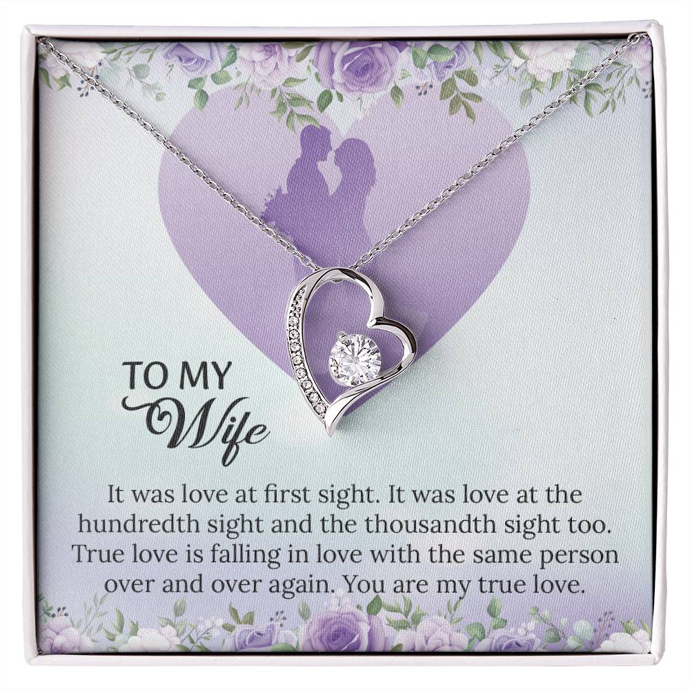 Message: It was love at first sight. It was love at the hundredth and the thousandth sight too. True love is falling in love with the same person over and over again . You are my true love.