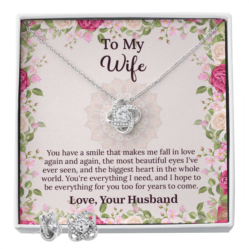 To My Wife Love knot Necklace & Earring Set, Necklace for Wife, Anniversary gift for Wife, Wife Birthday Gift