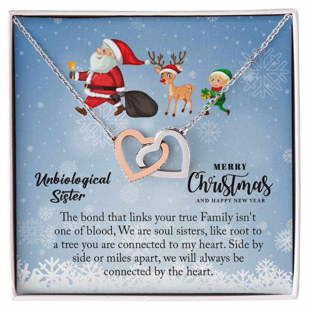 Unbiological Sister Interlocking Hearts Necklace, Christmas Gift for Sister, Beautiful Necklace for Birthday, Sister Graduation Gift